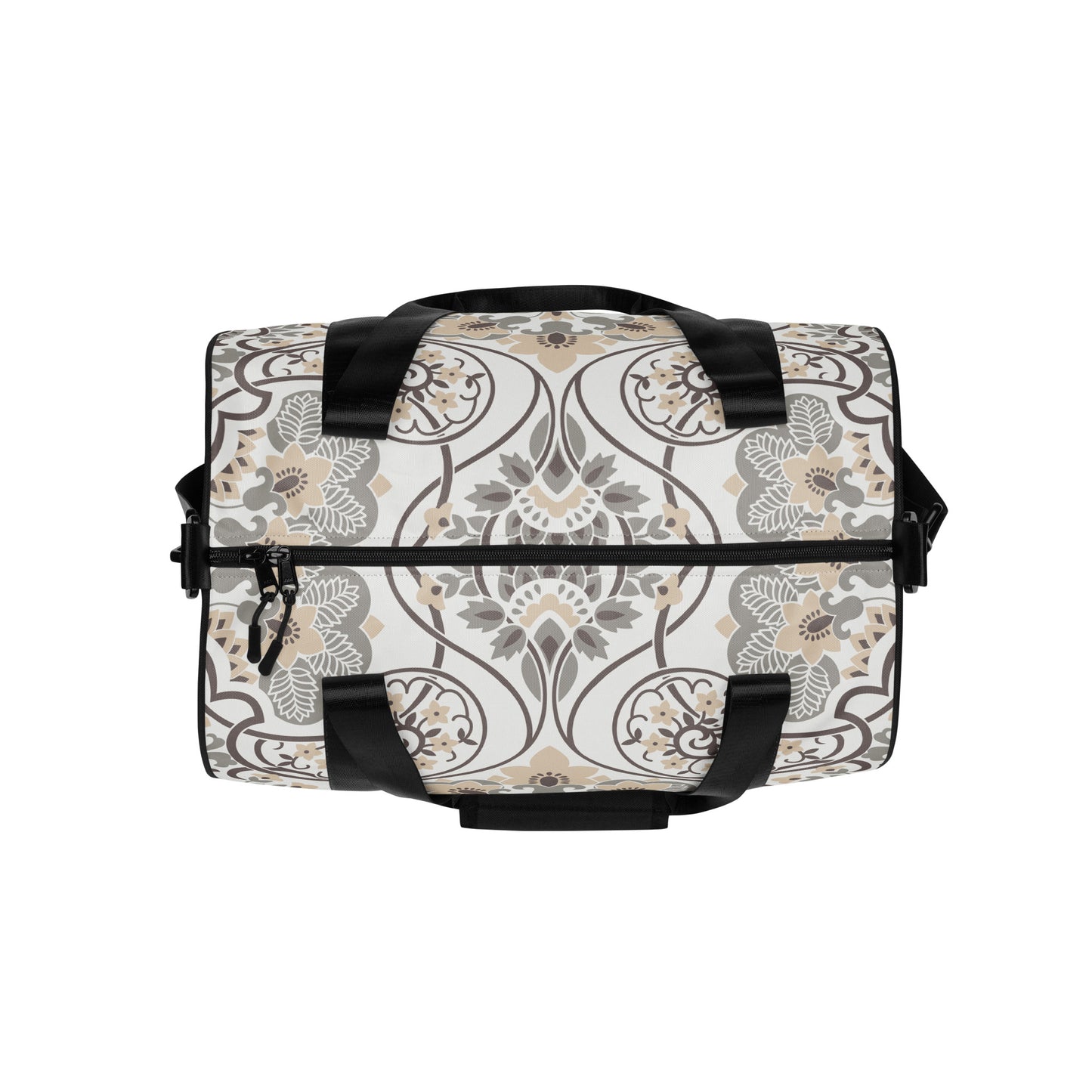 Ready to get your fitness on? Add some punch to pumping iron with this all-over print gym bag. Made from 100% polyester and sturdy, water-resistant fabric, this bag is fun meets function. And it’s got pockets!