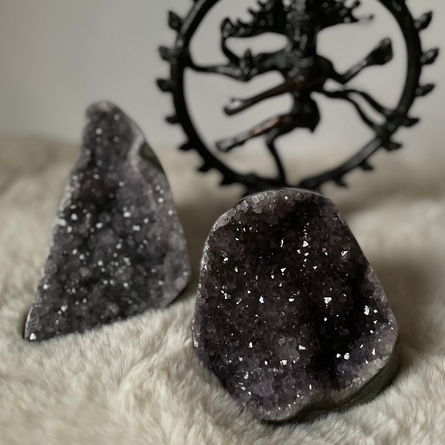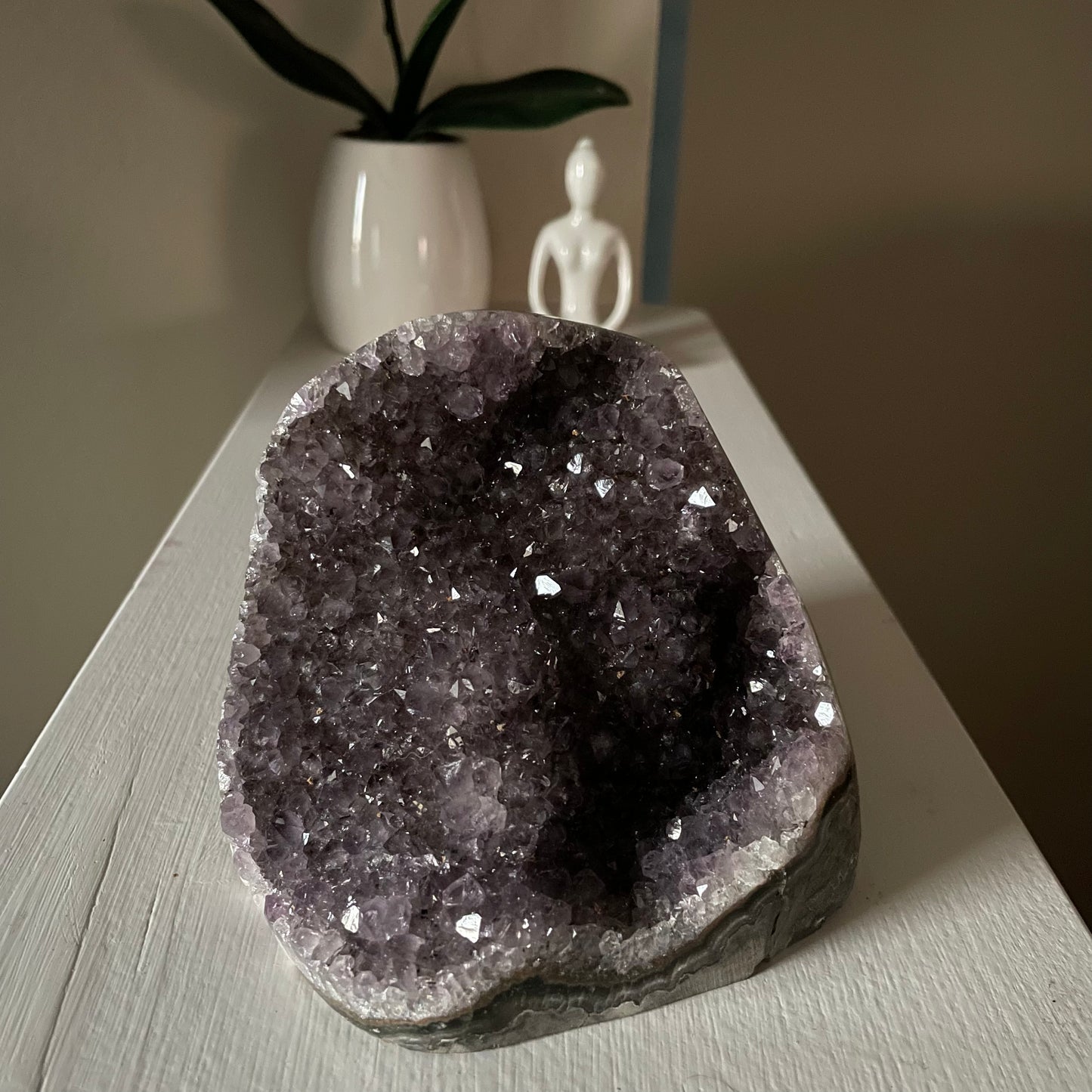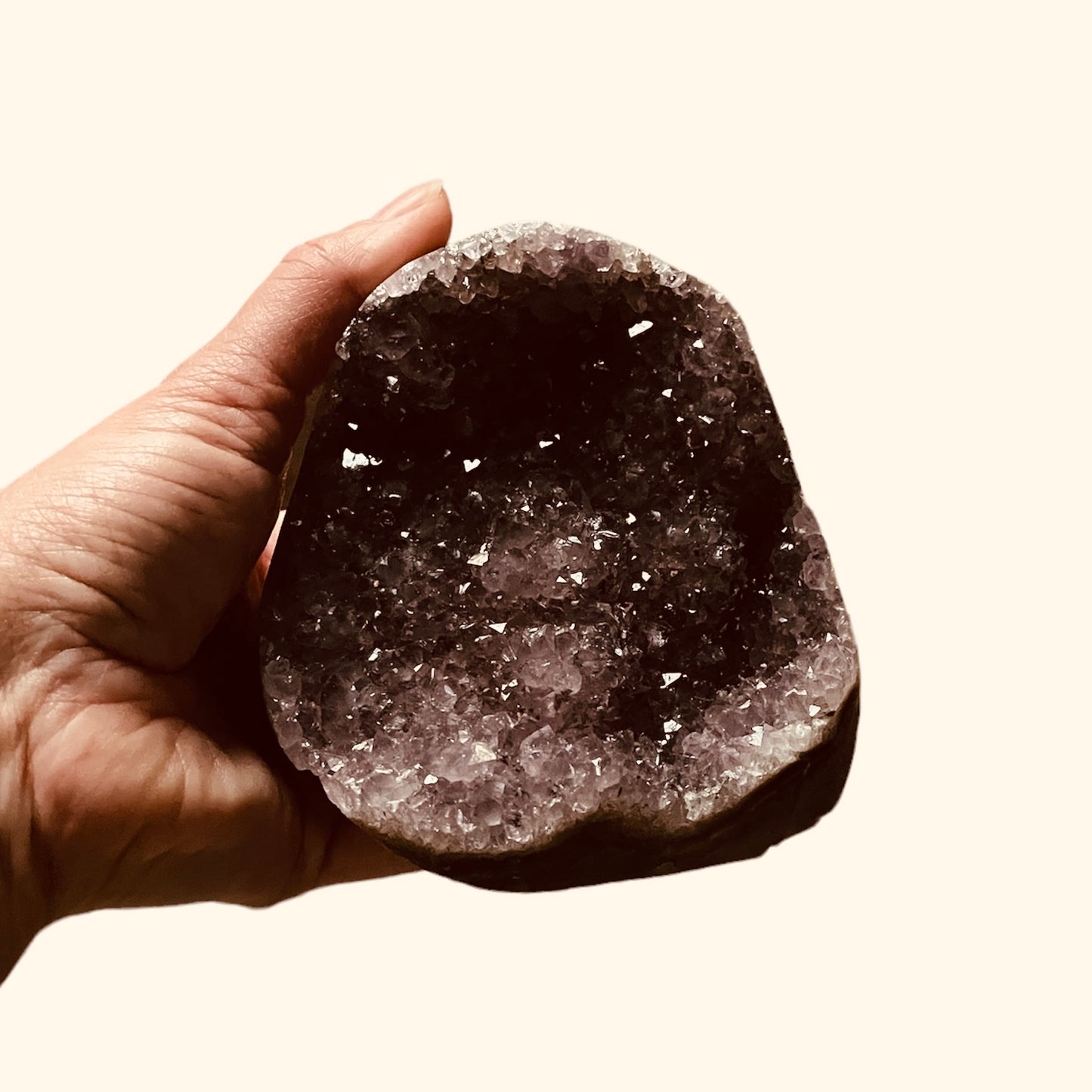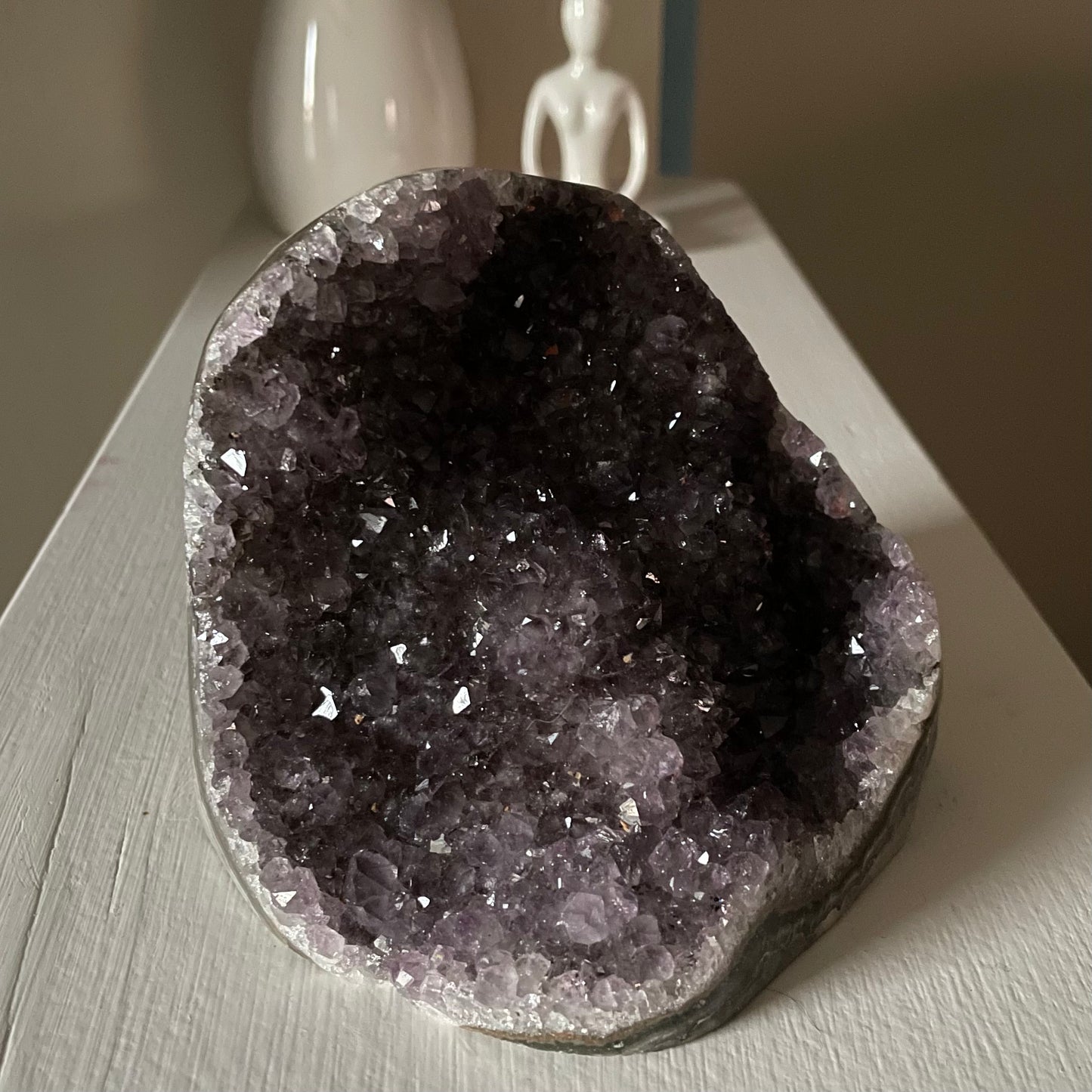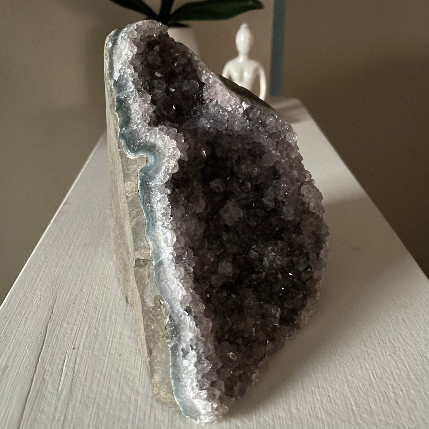 Black amethyst is known to increase peace and harmony and boost emotional healing. It also has powerful energy for psychic protection & is a strong grounding stone. Black Amethyst stimulates the Crown Chakra, but also strengthens the Root Chakra. Beautiful and mysterious, this dark amethyst makes any space feel more magical.