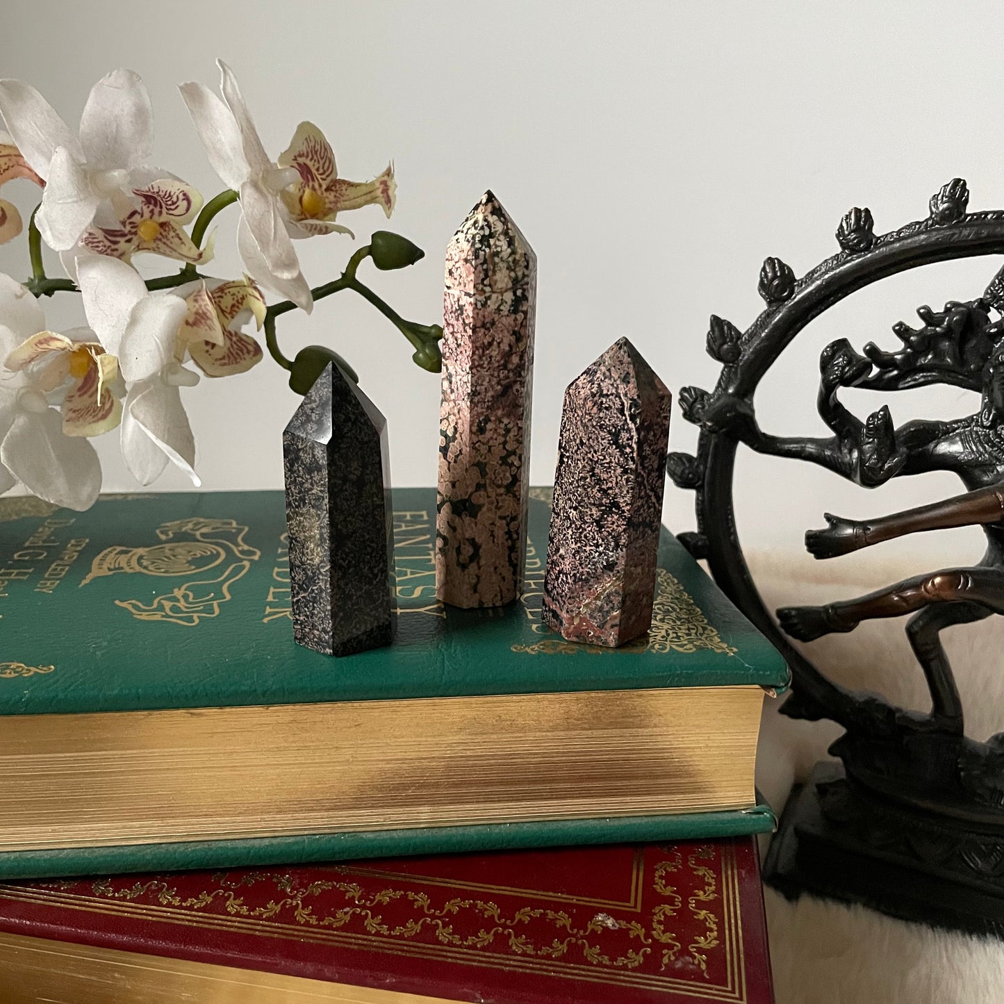 A stone of transformation and empowerment. It has a strong ability to absorb negative energies and transform your space. It is protective and grounding and thought to shield the heart.