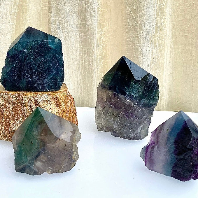 Top polished fluorite generator points, Pieces may vary in size, shape, and color.
