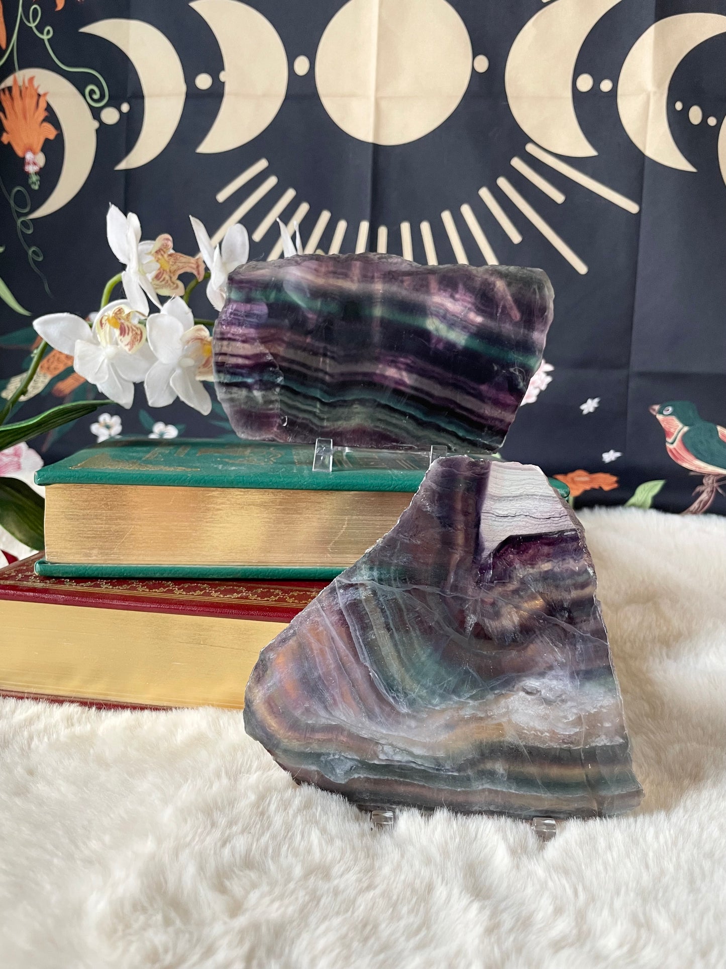 Fluorite is believed to bring clarity and mental focus, making it a perfect addition to your meditation or healing practices. Experience the beauty and benefits of Fluorite with our high-quality slab.