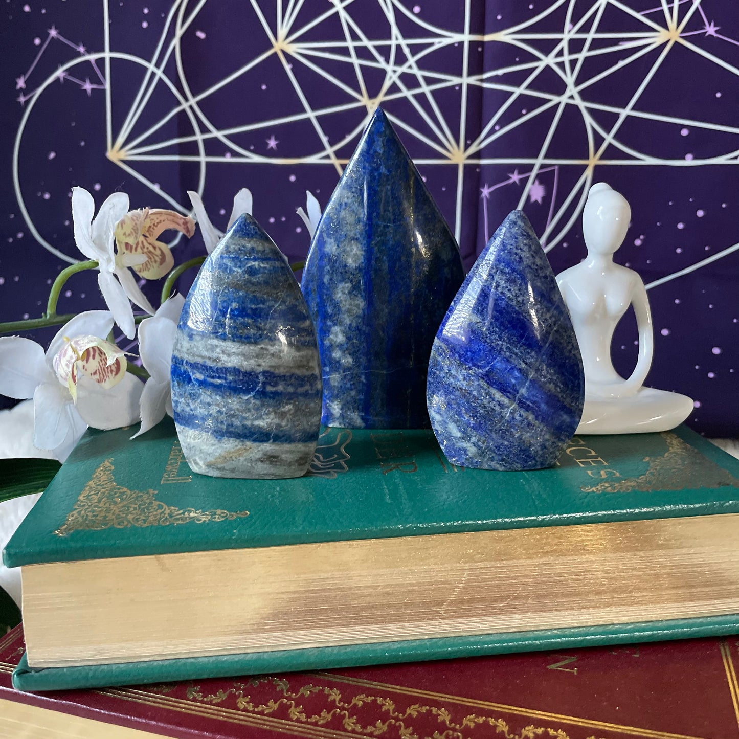Cherished by the ancient Egyptians, Lapis Lazuli activates the third eye chakra facilitating deep intuition, psychic abilities, and spiritual growth.