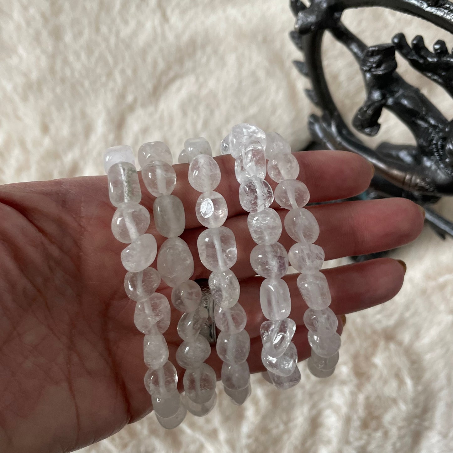 Tumbled clear quartz stretch bracelet.